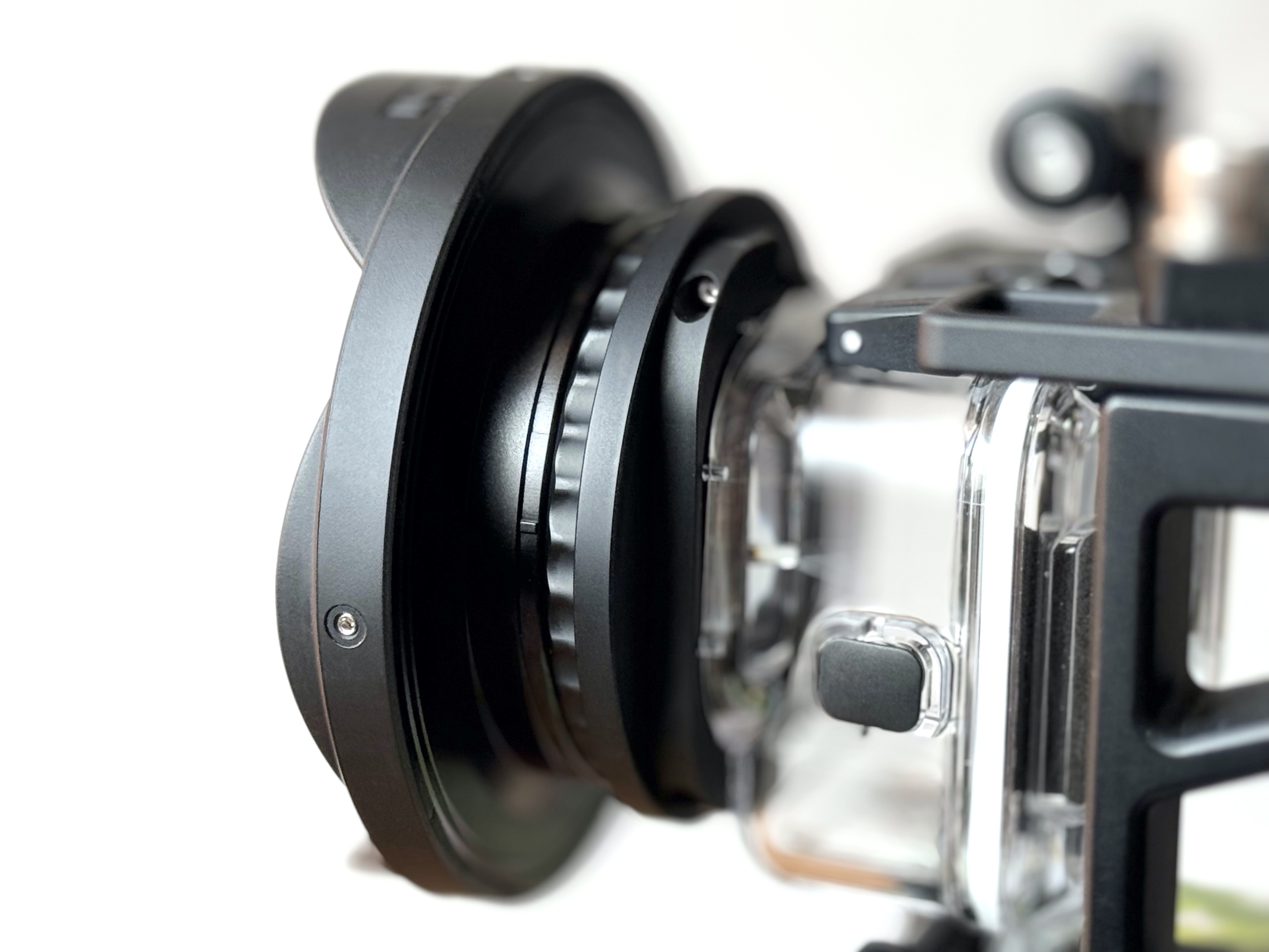 The adapter ring weighs 20 grams. After installation, the gap between the rear end of the wet lens and the front end of the lens of the waterproof housing simply doesn’t exist. This ensures that when the external lens is connected to the camera, the adapted lens is almost flush with the camera lens, which prevents the vignetting phenomenon from happening, and provides better results.